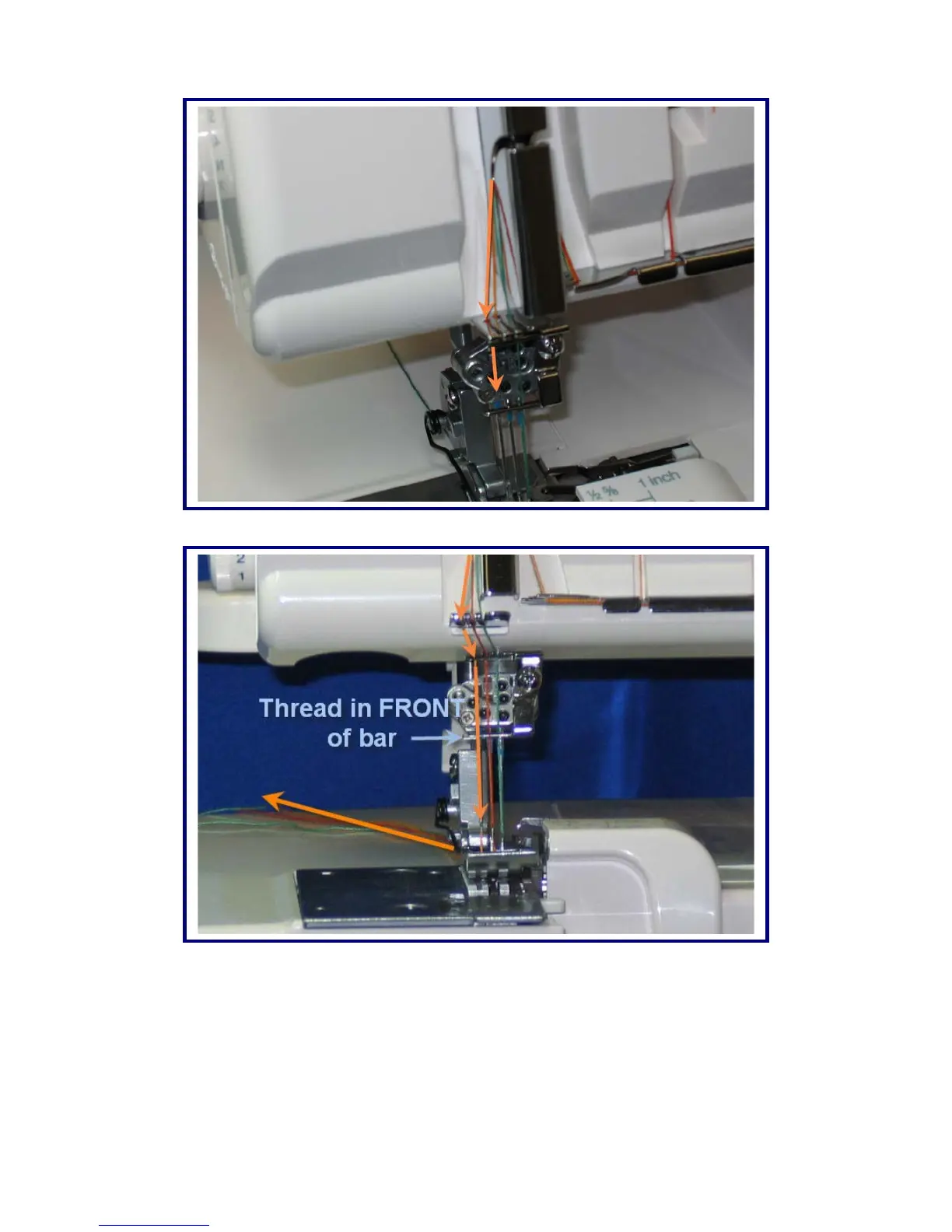 thread through the opening in the foot directly below the needle, pull thread