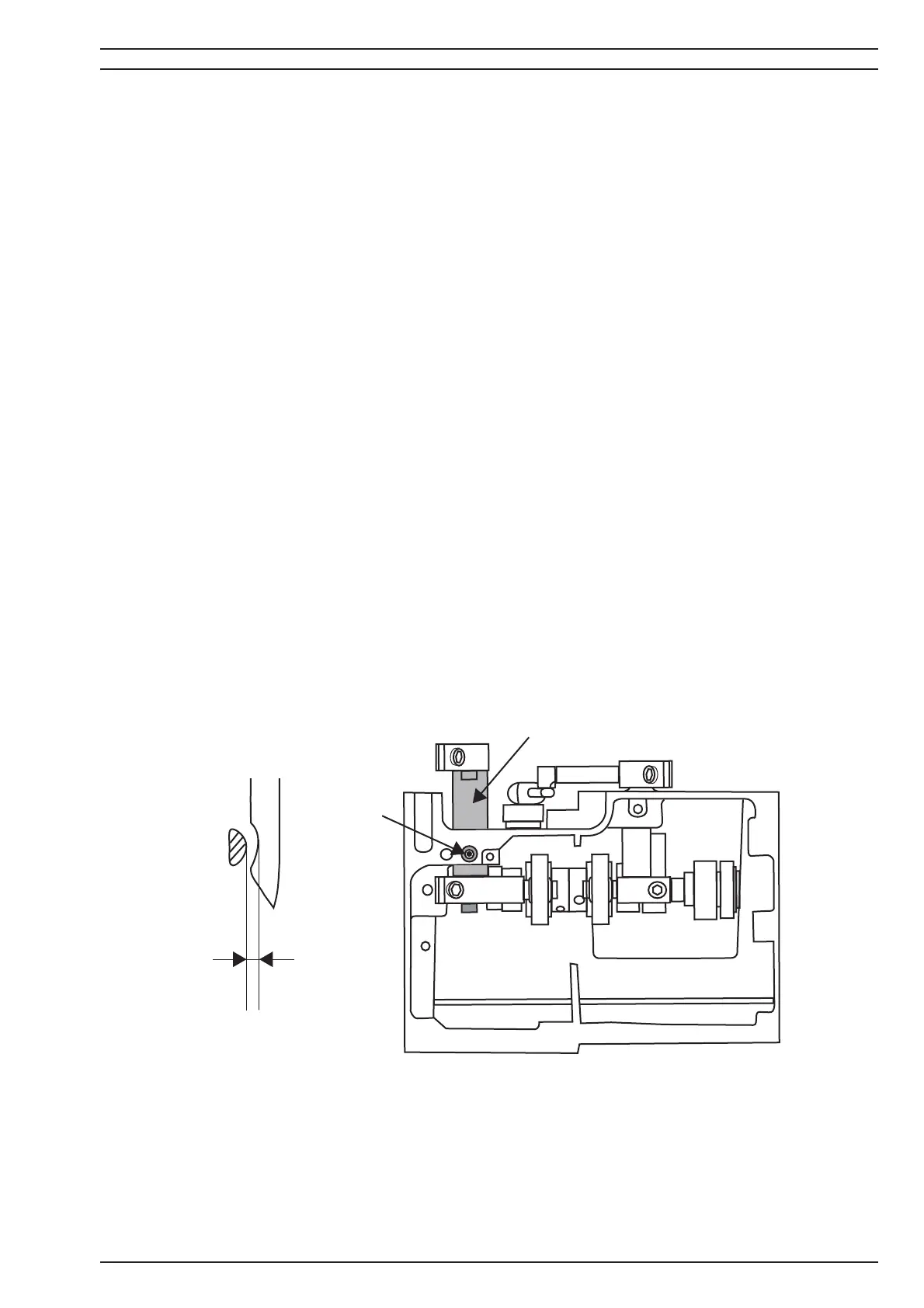 When the point of lower looper is behind the needle it must be a clearance of 0 - 0.03 mm