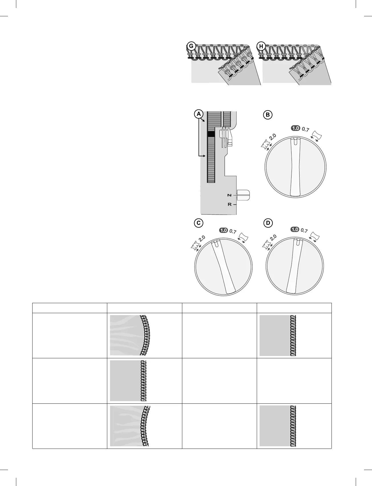 el del diente trasero, el tejido se "estirará" o "fruncirá" la tela.