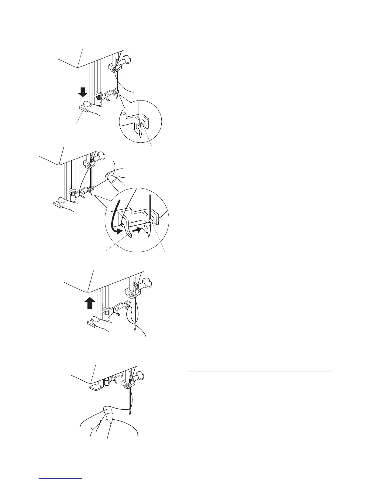 Lower the presser foot. Push the needle threader