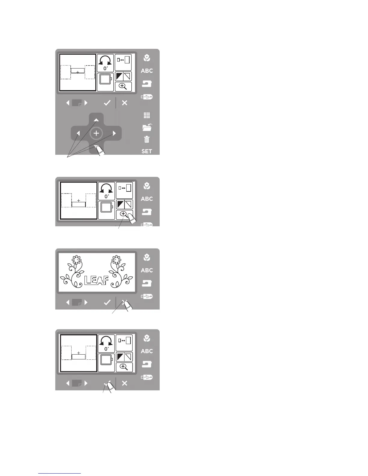 Confirm the layout of the embroidery by pressing the