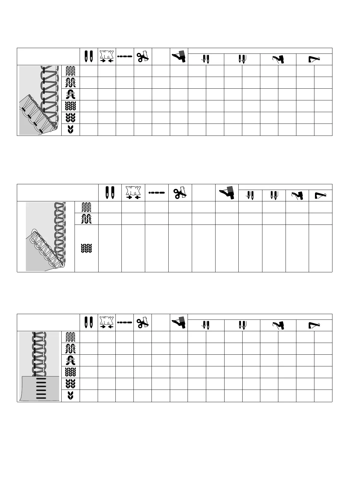 Note: Use the right needle instead for a narrow stitch. Recommended thread tension settings within brackets in the chart.