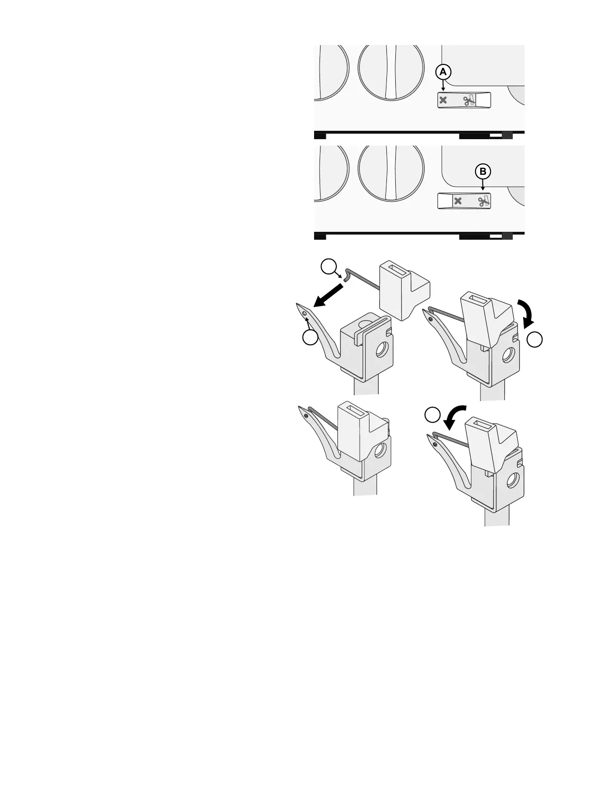 y el hilo de la devanadora inferior. Antes de coser, el conversor