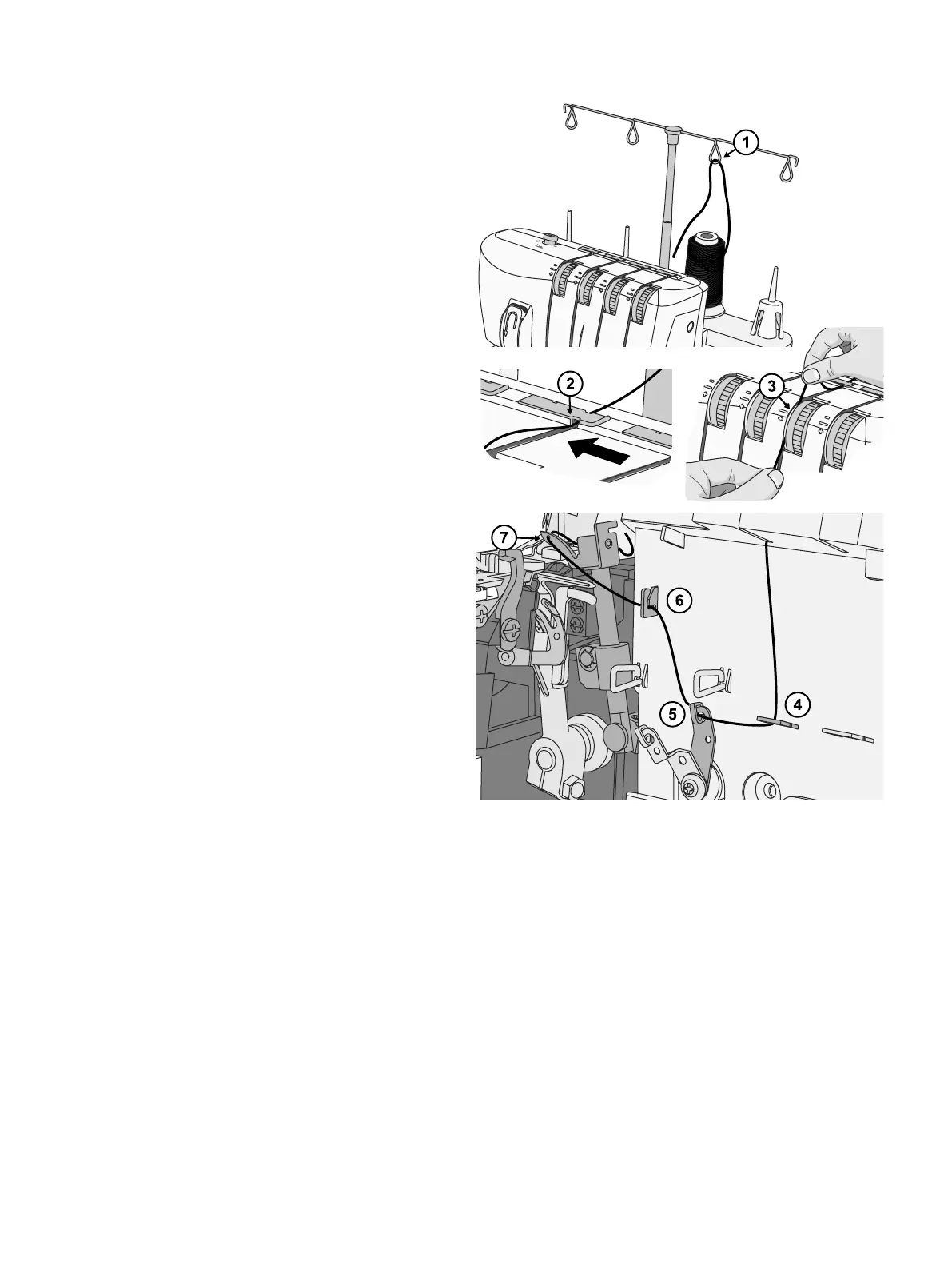 Al enhebrar la devanadora superior, siga el recorrido del hilo