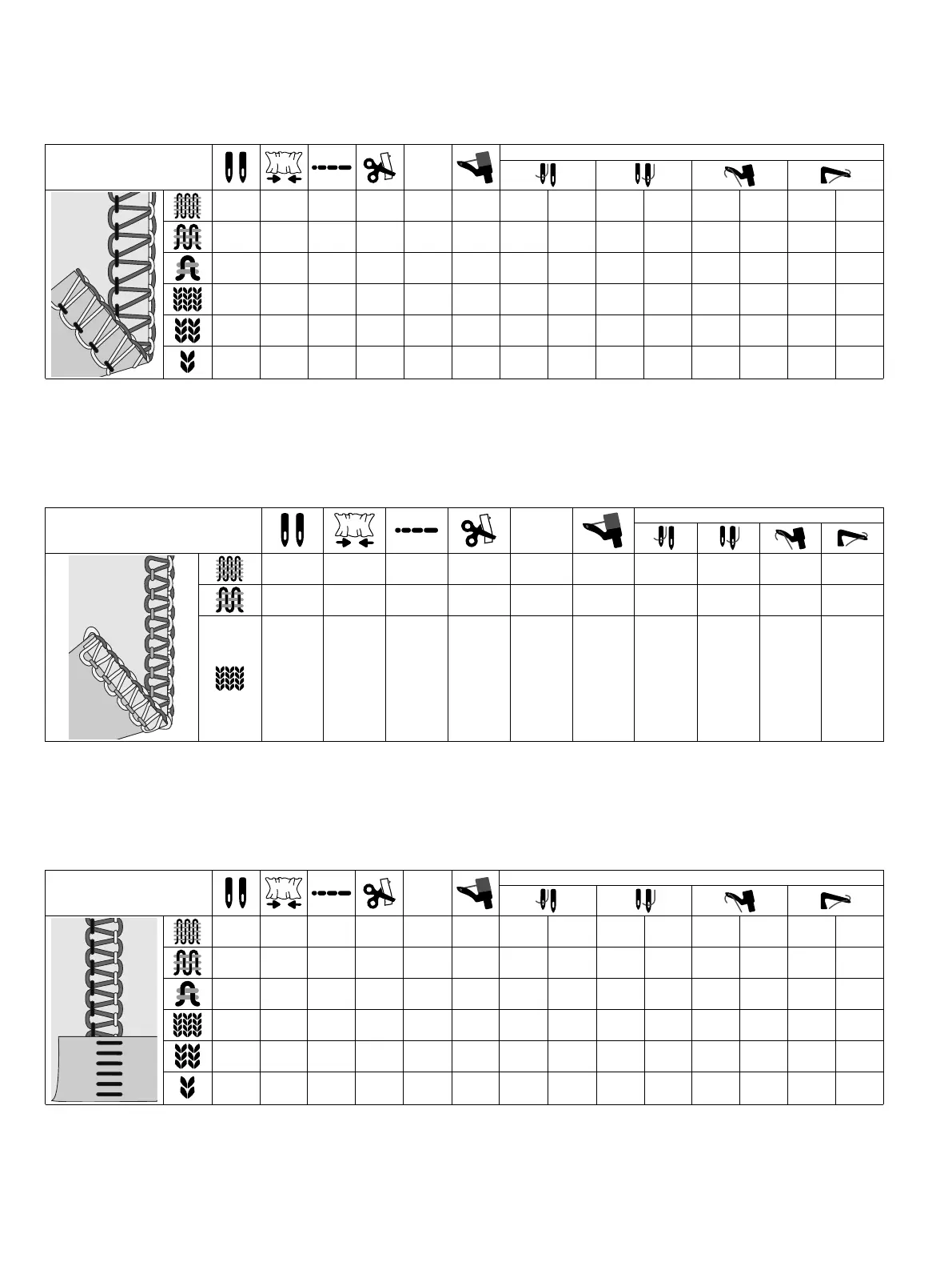 Puntada de remallado de 3 hilos, ancha (y estrecha)