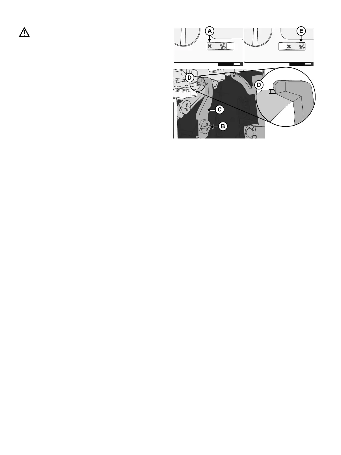 • Apriete el tornillo de ajuste de la cuchilla superior (B).