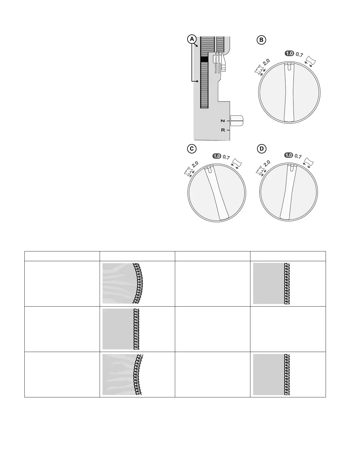 1.0 et 2.0. Le réglage dépend du tissu cousu. Réalisez des