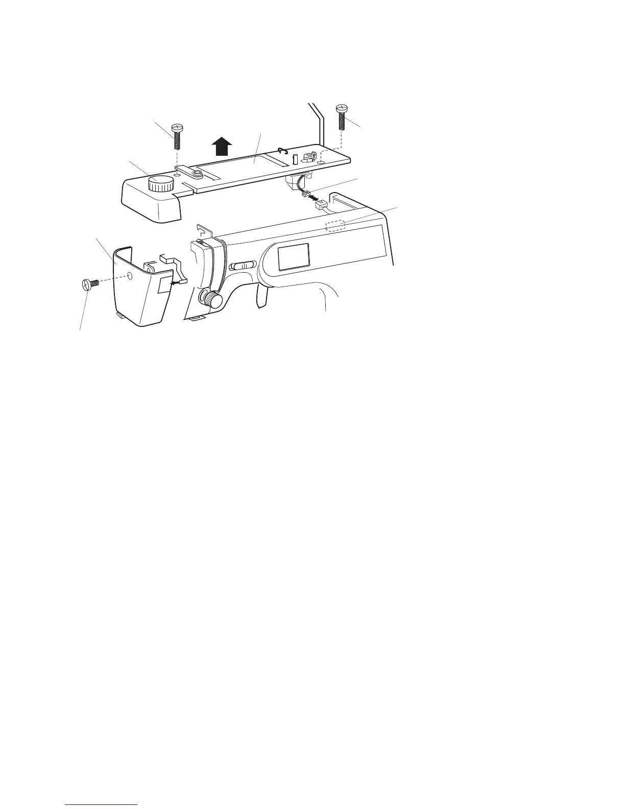2. Pull out the connector (D) of the bobbin winder and remove the top cover.