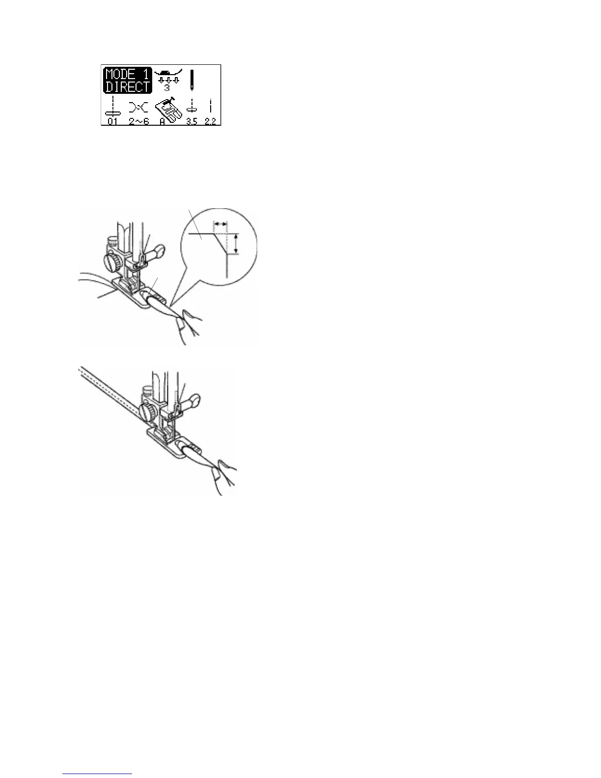 1/4 inch (3) for easier insertion of the hem into the foot.