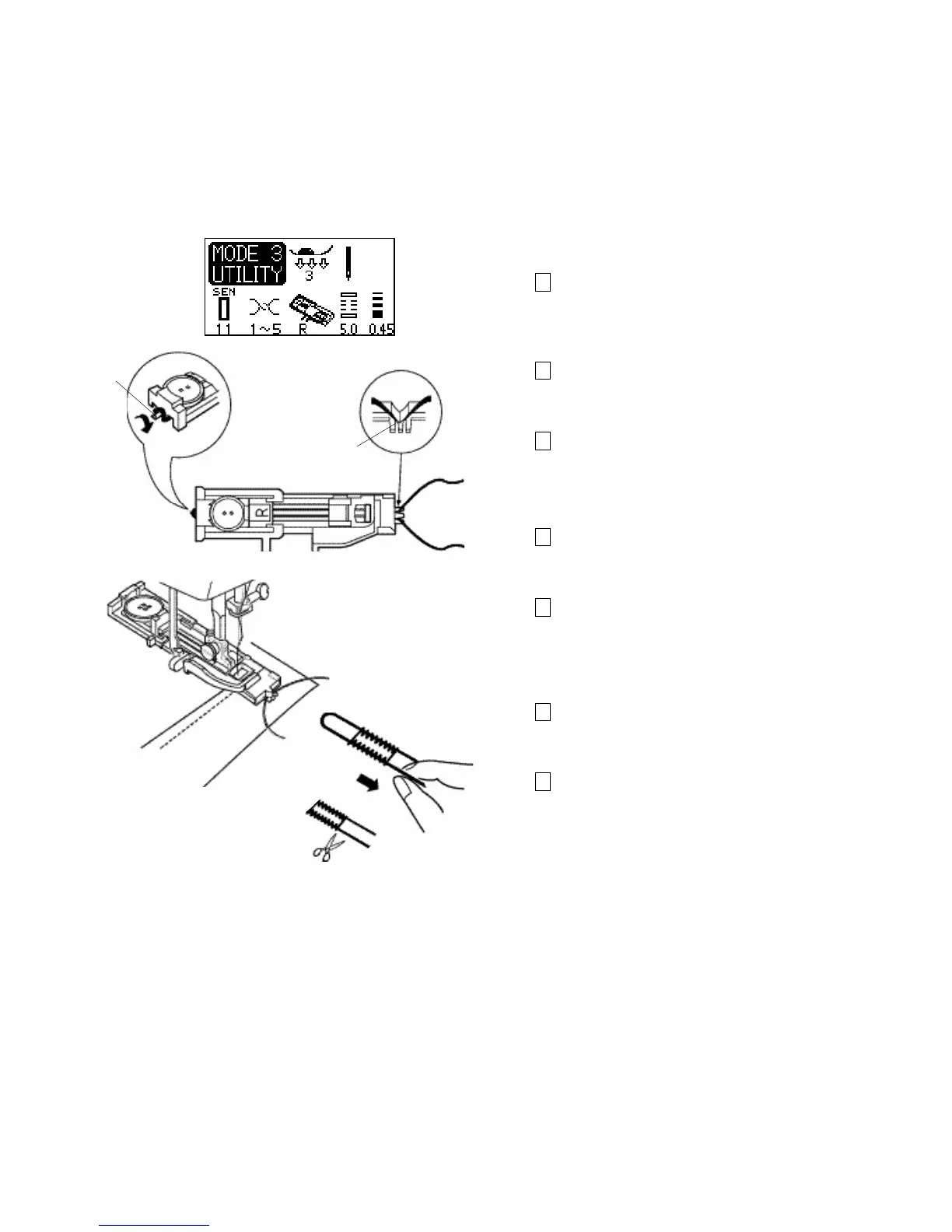 buttonhole lever second. Start the machine and sew the