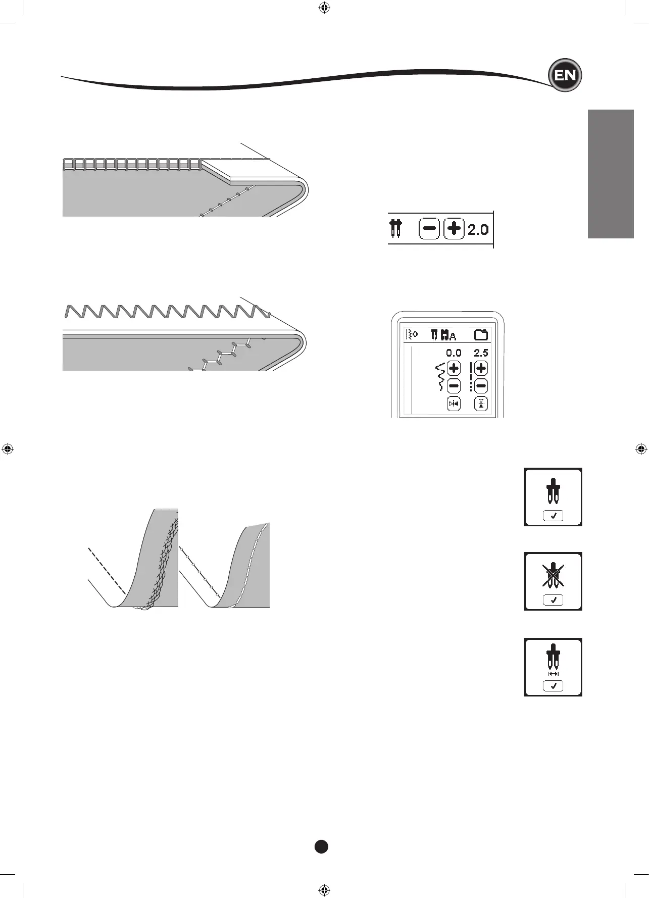 Activate the twin needle program by pressing - or + buttons