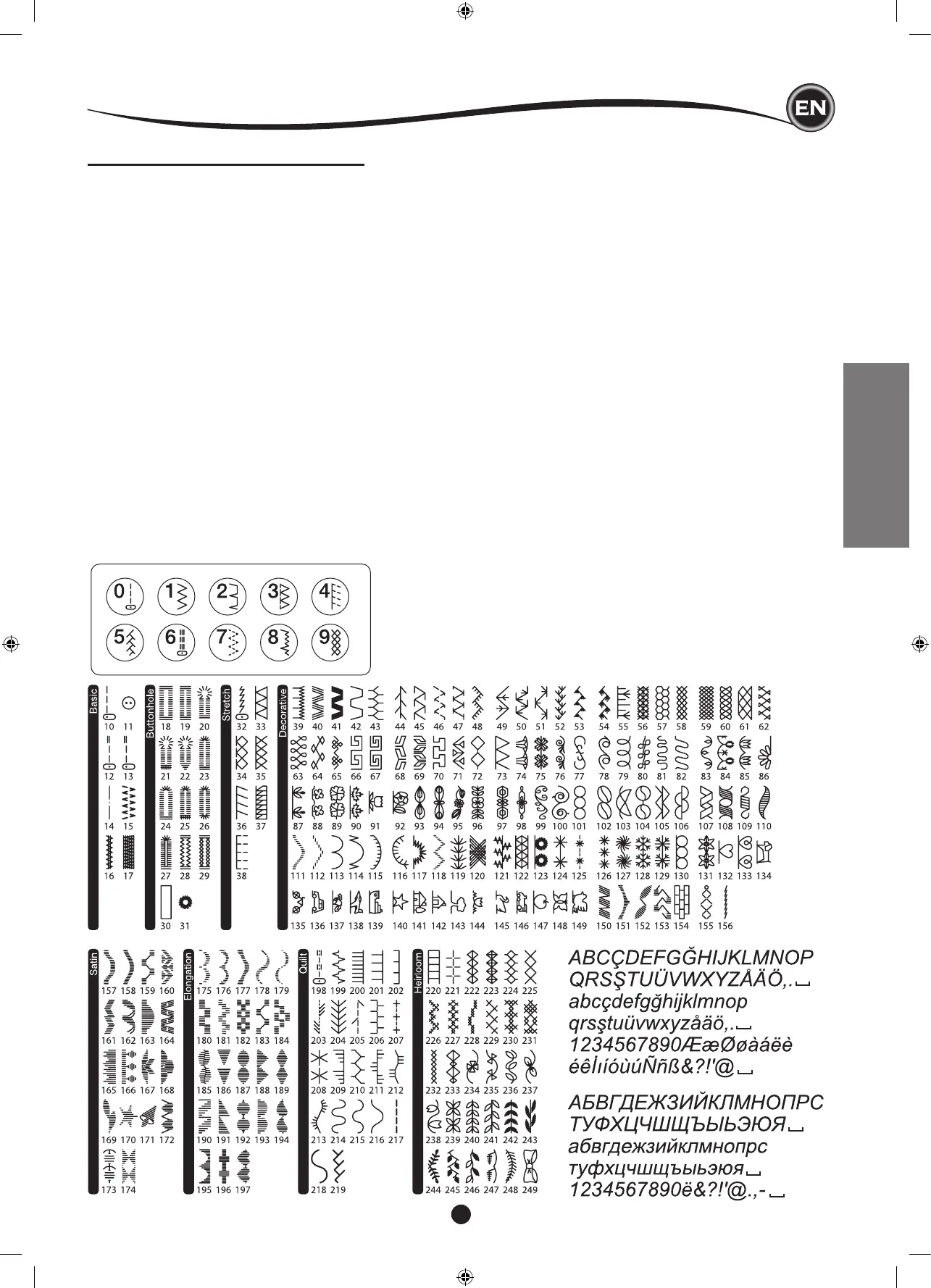 • For overcasting, applique, etc.