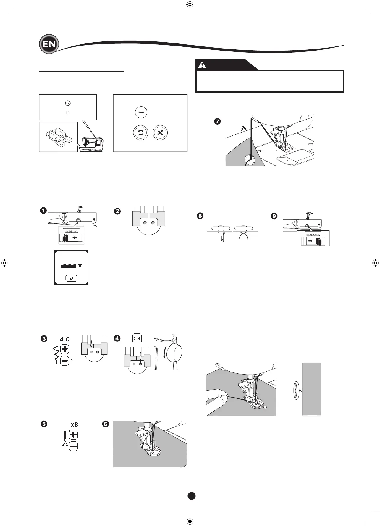 7. Raise the foot and cut the threads remaining about 10 cm (4”)