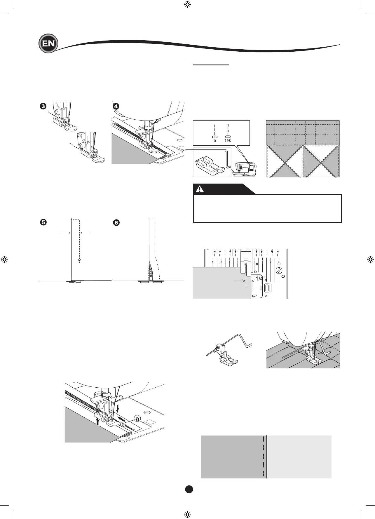 quilting bar to sew successive rows. Insert quilting bar into the