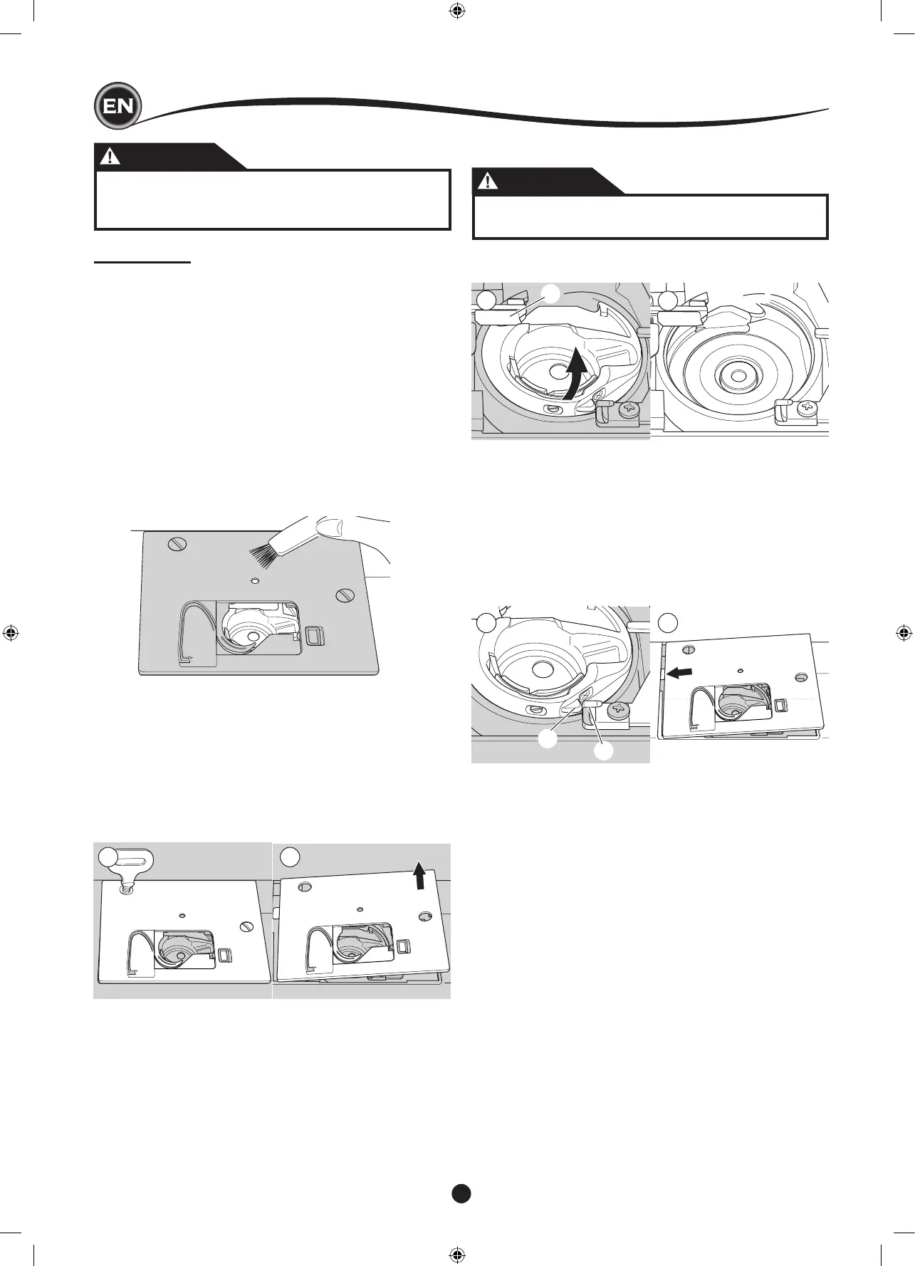 4. Clean the hook race, feed dogs and bobbin holder with a