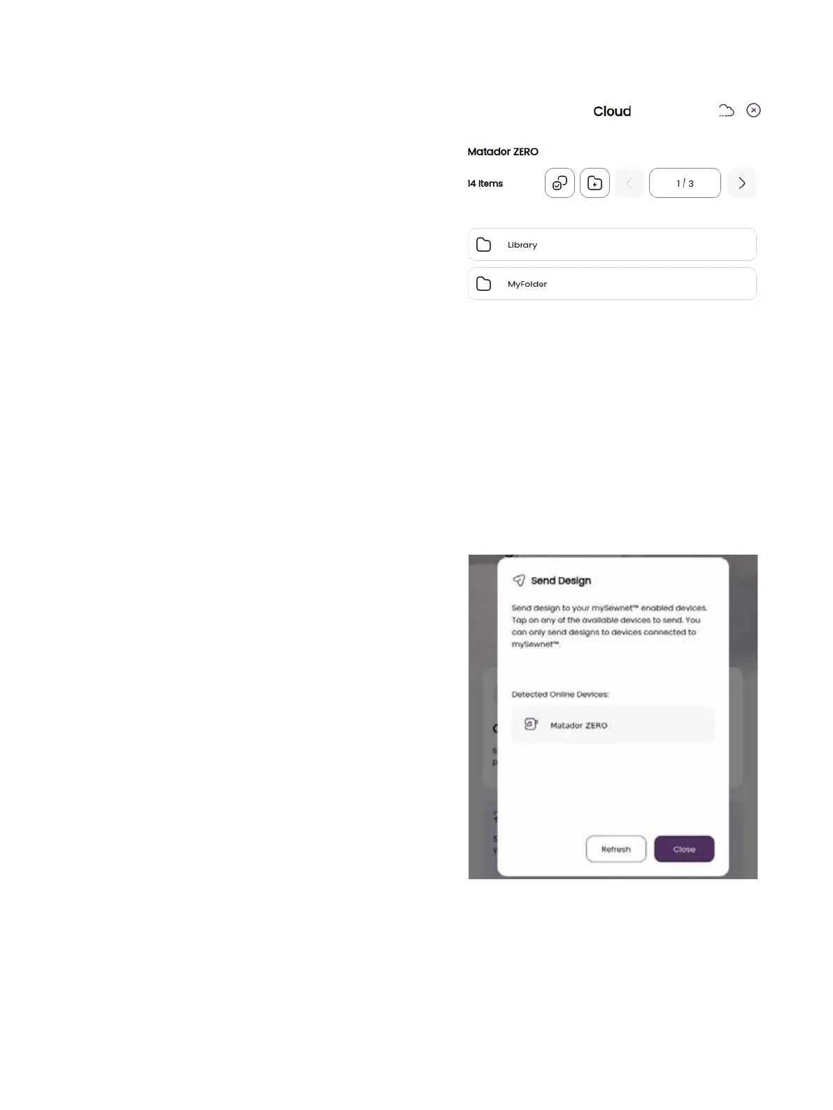 Note: You can only send designs to devices connected to the