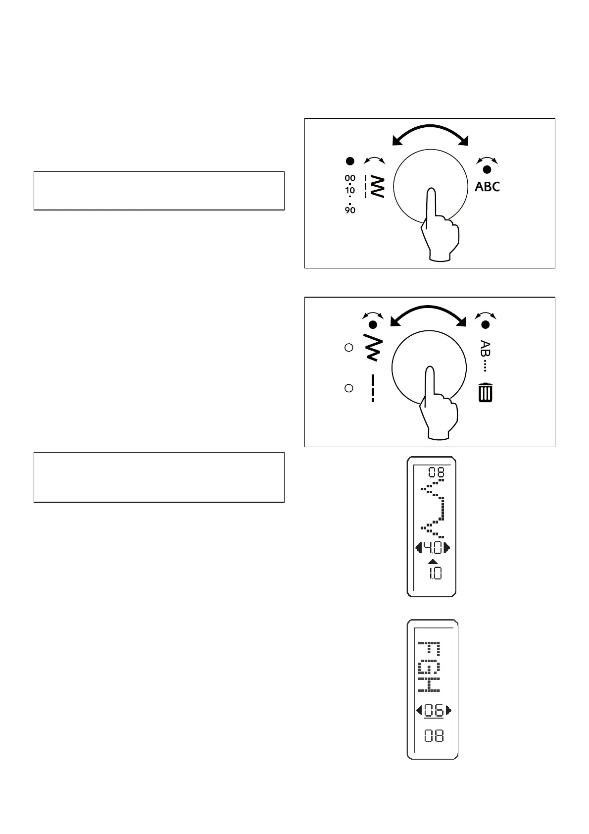 Note: When an arrow on either side of the stitch width/