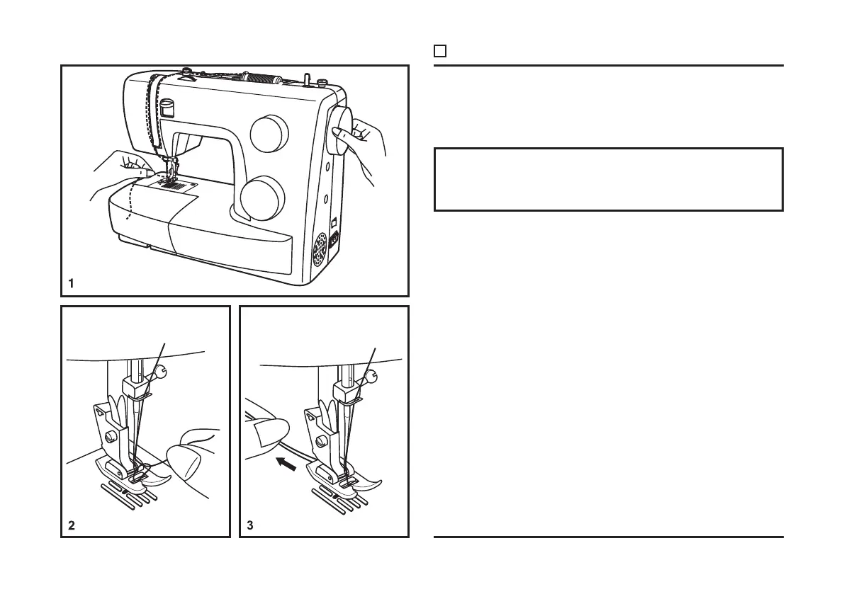 Ziehen Sie beide Fäden nach hinten, unter den Nähfuß. (3)