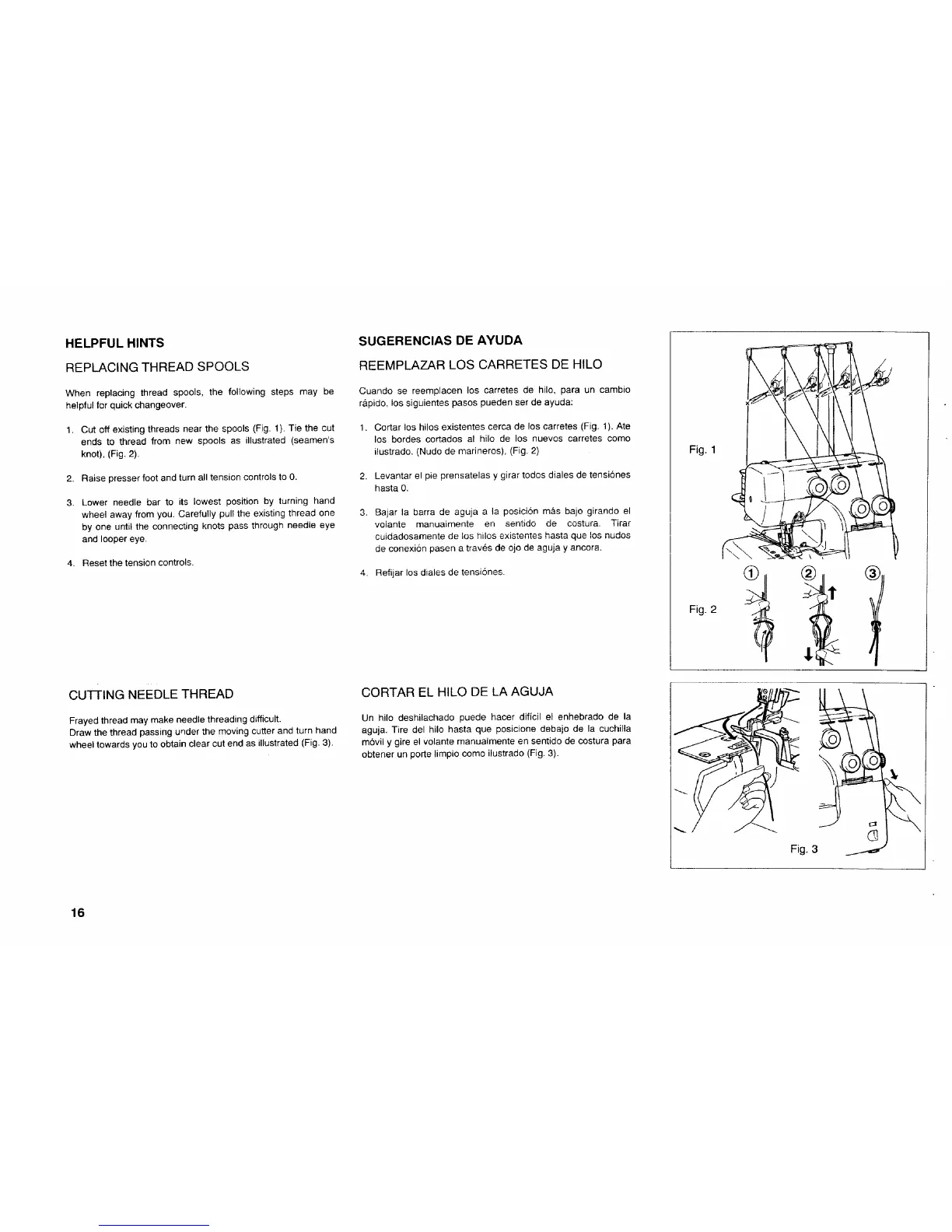 1. Cut off existing threads near the spools (Fig. 1). Tie the cut