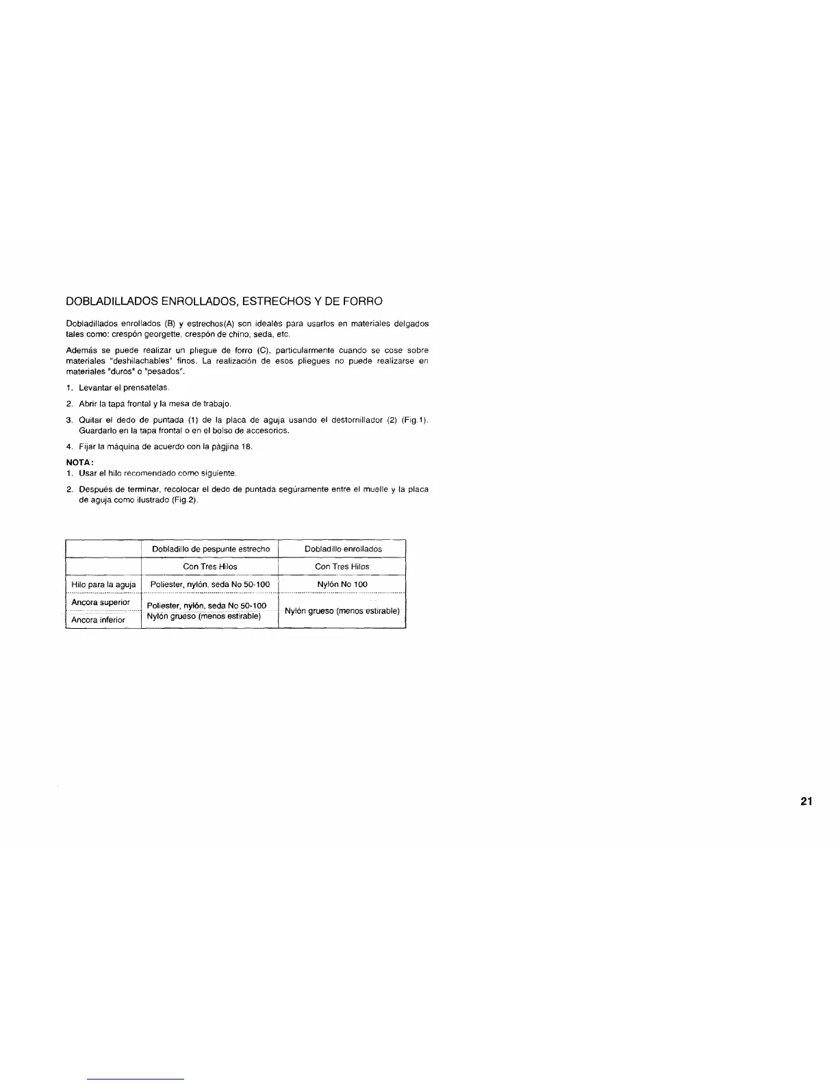 Dobladillados enrollados (B) y estrechos(A) son ideales para usarlos en materiales delgados