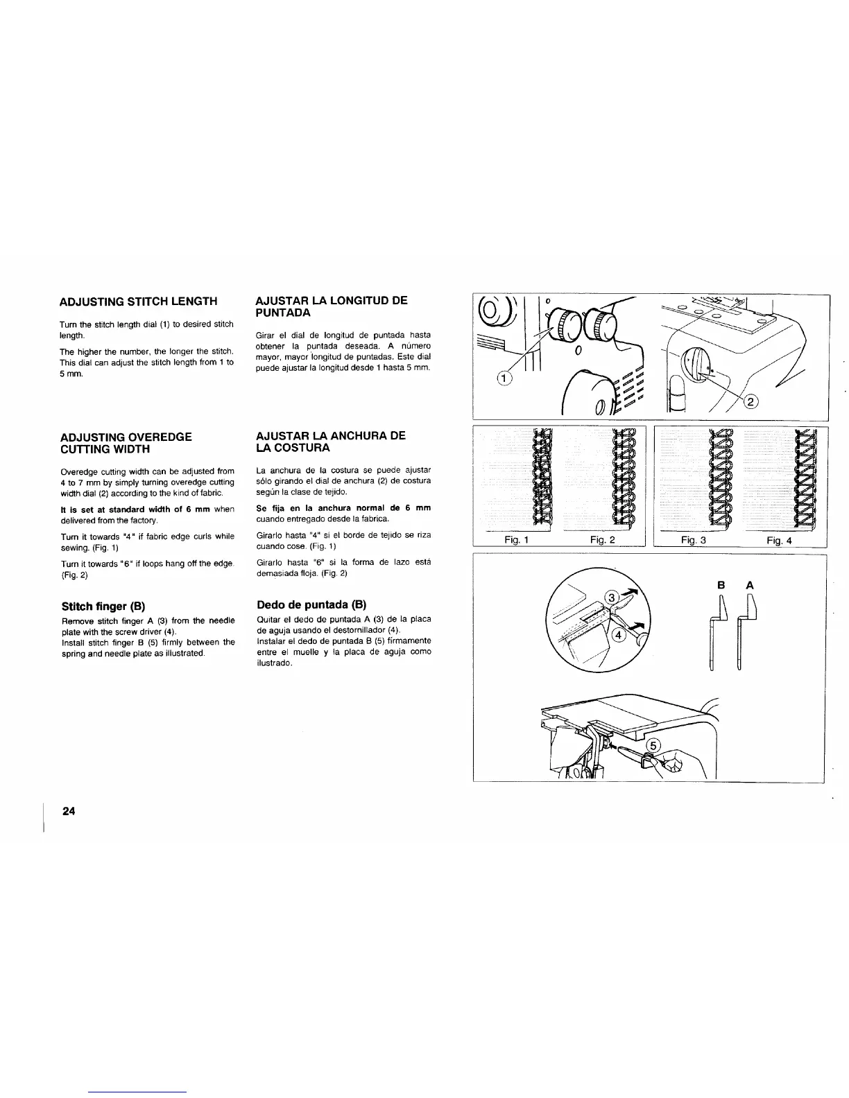 Install stitch finger B (5) firmly between the