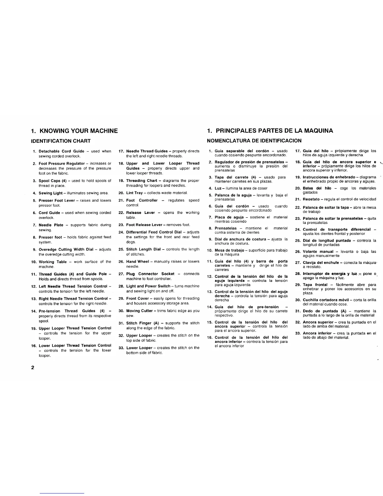 1. KNOWING YOUR MACHINE 1. PRINCIPALES PARTES DE LA MAQUINA
