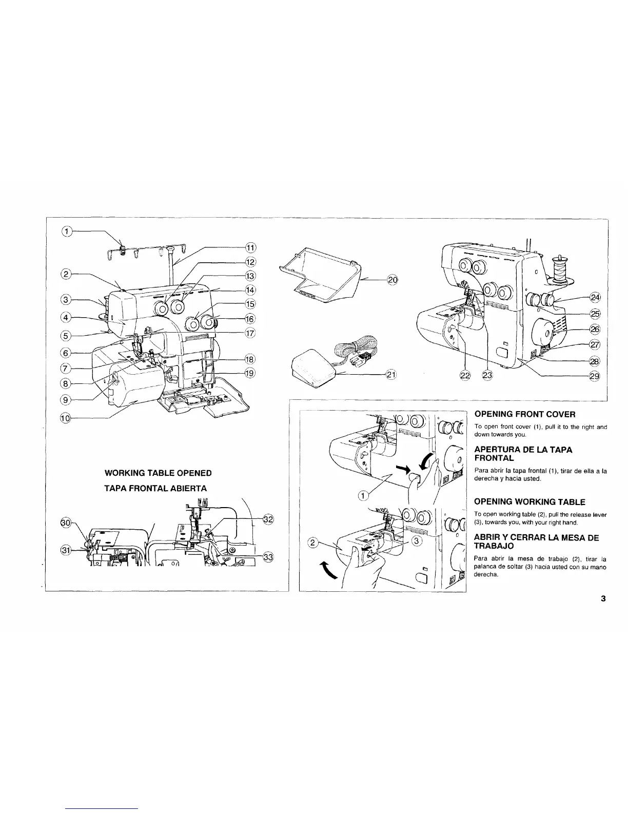 Para abrir la mesa de trabajo (2), tirar la