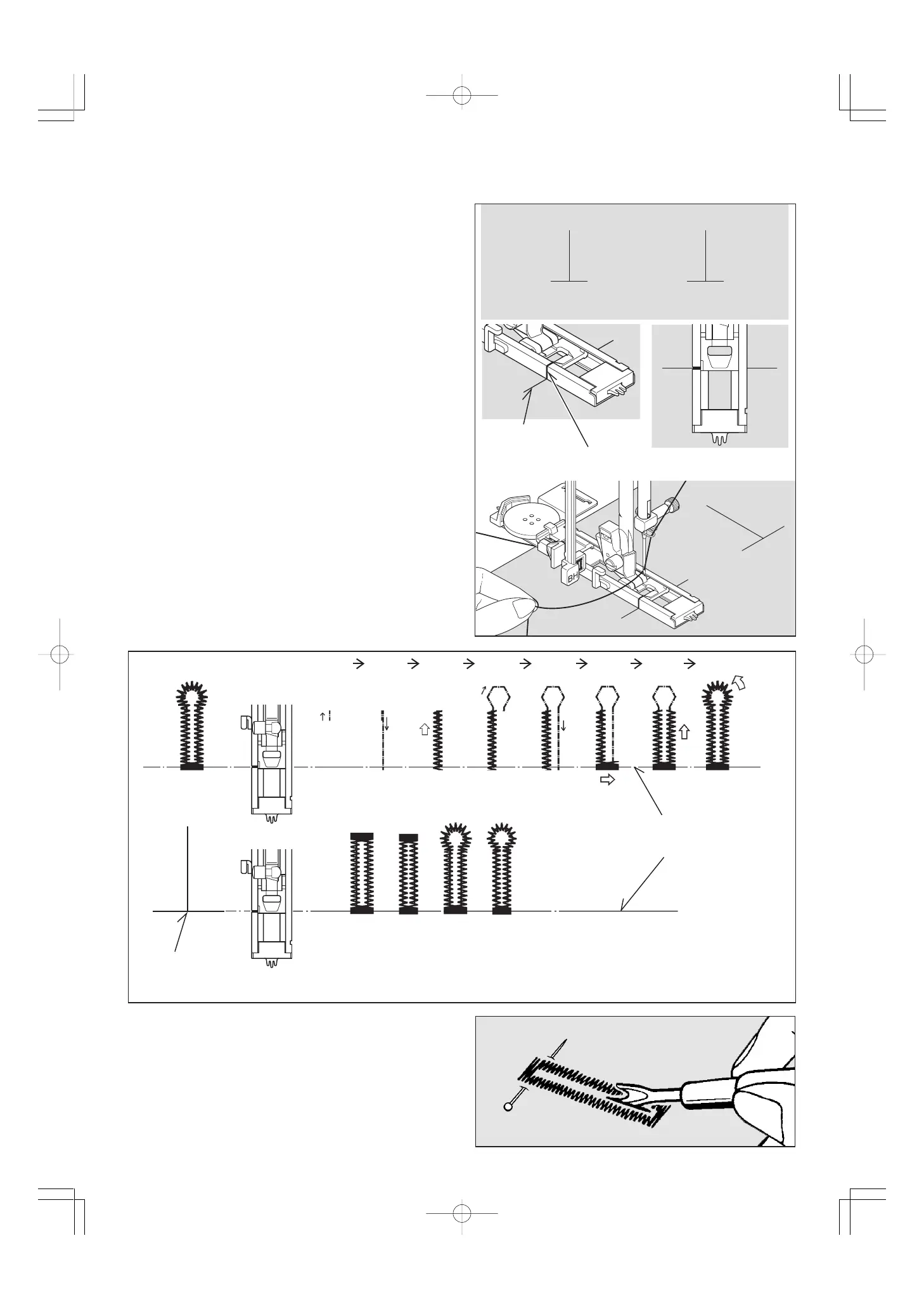 6. Place the fabric under the foot. Pull out the bobbin thread