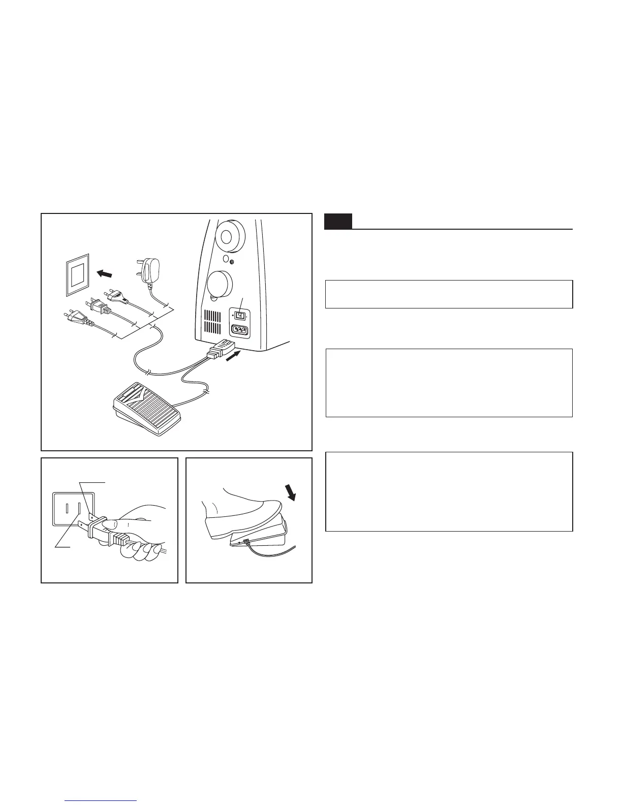 The foot control pedal regulates the sewing speed. (3)