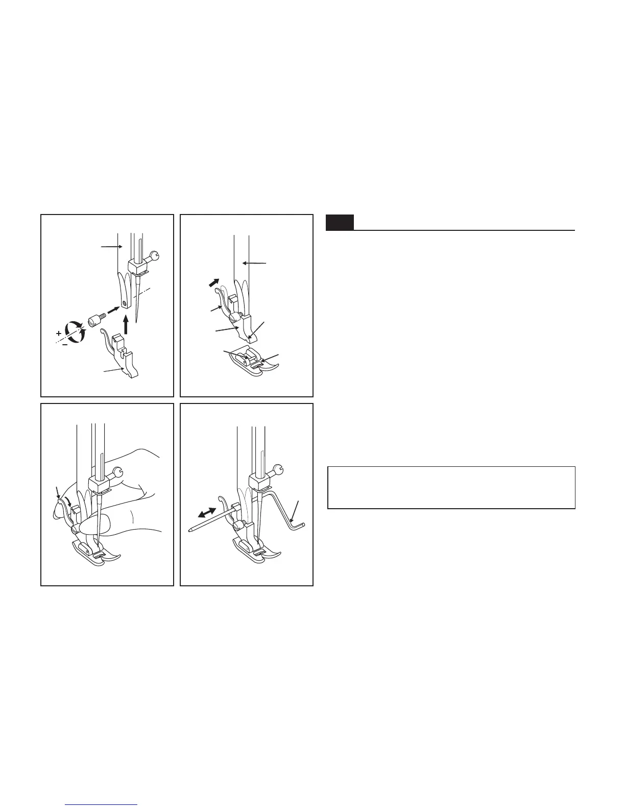 Raise the presser bar (a). Attach the presser foot shank (b) as