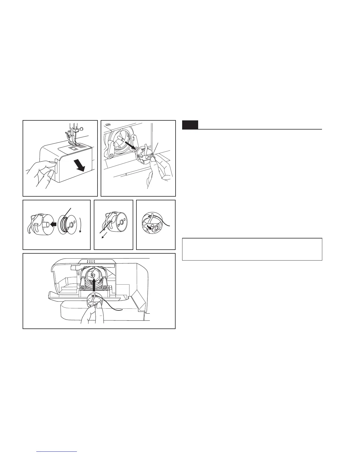 When inserting or removing the bobbin, the needle must be