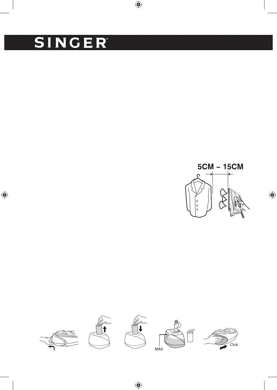 около 5-15 см. от дрехата. Натиснете бутона за подаване на