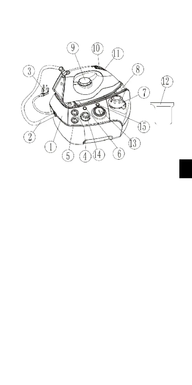 2. Forbindelseskabel til strygejern og varmtvandsbeholder (strømledning + dampslange)