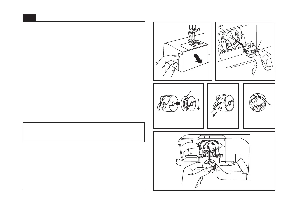 - Pull the bobbin case tab (a) and remove the bobbin case. (2)