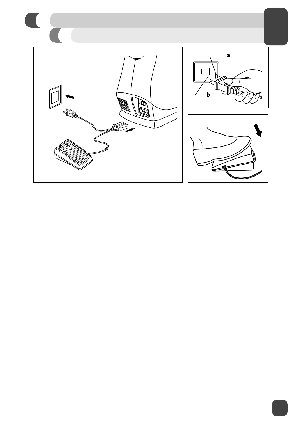 The foot control regulates the sewing speed. When foot control is disconnected, the machine will not
