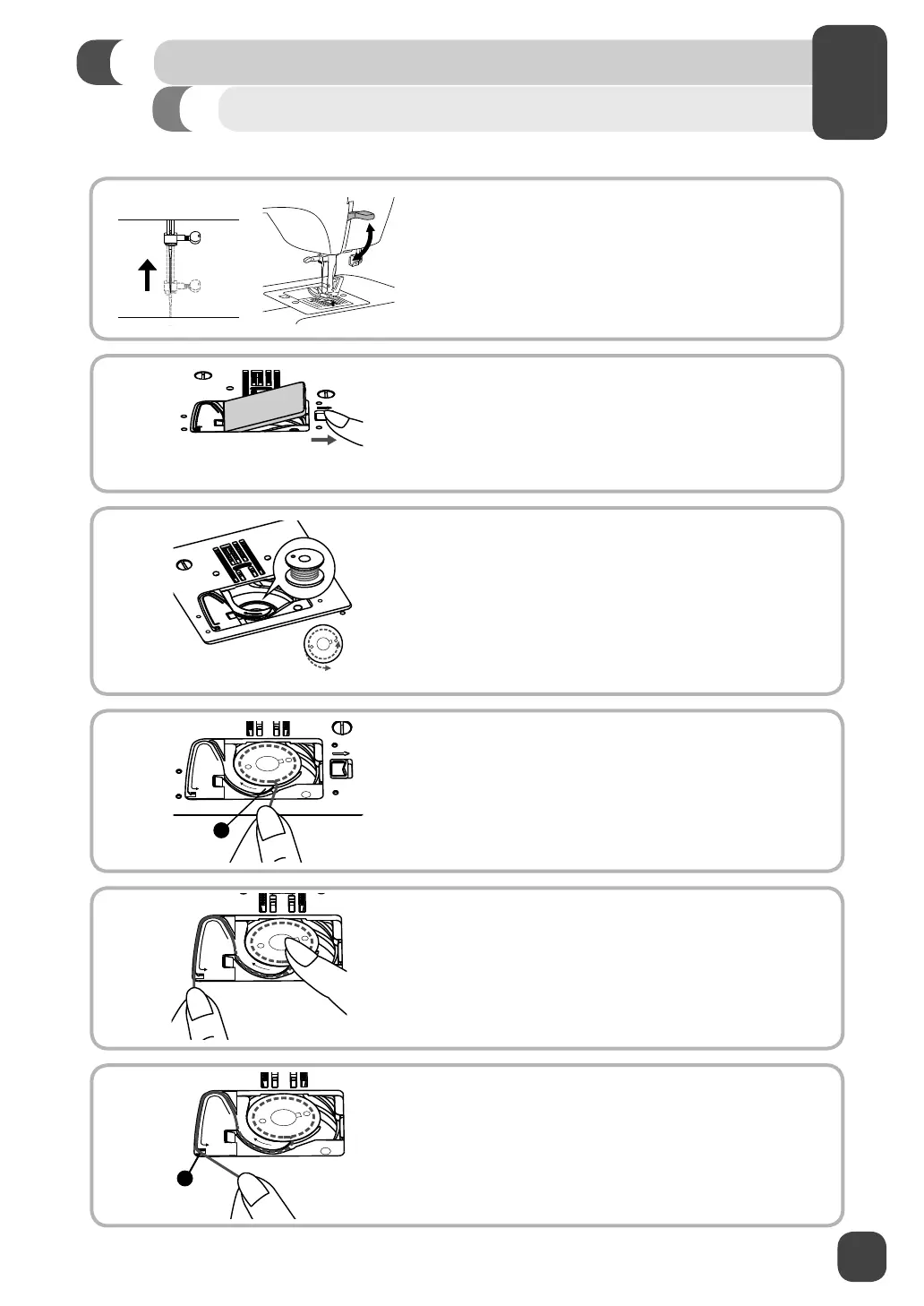 ⚠ Turn power switch off before inserting or removing the bobbin.