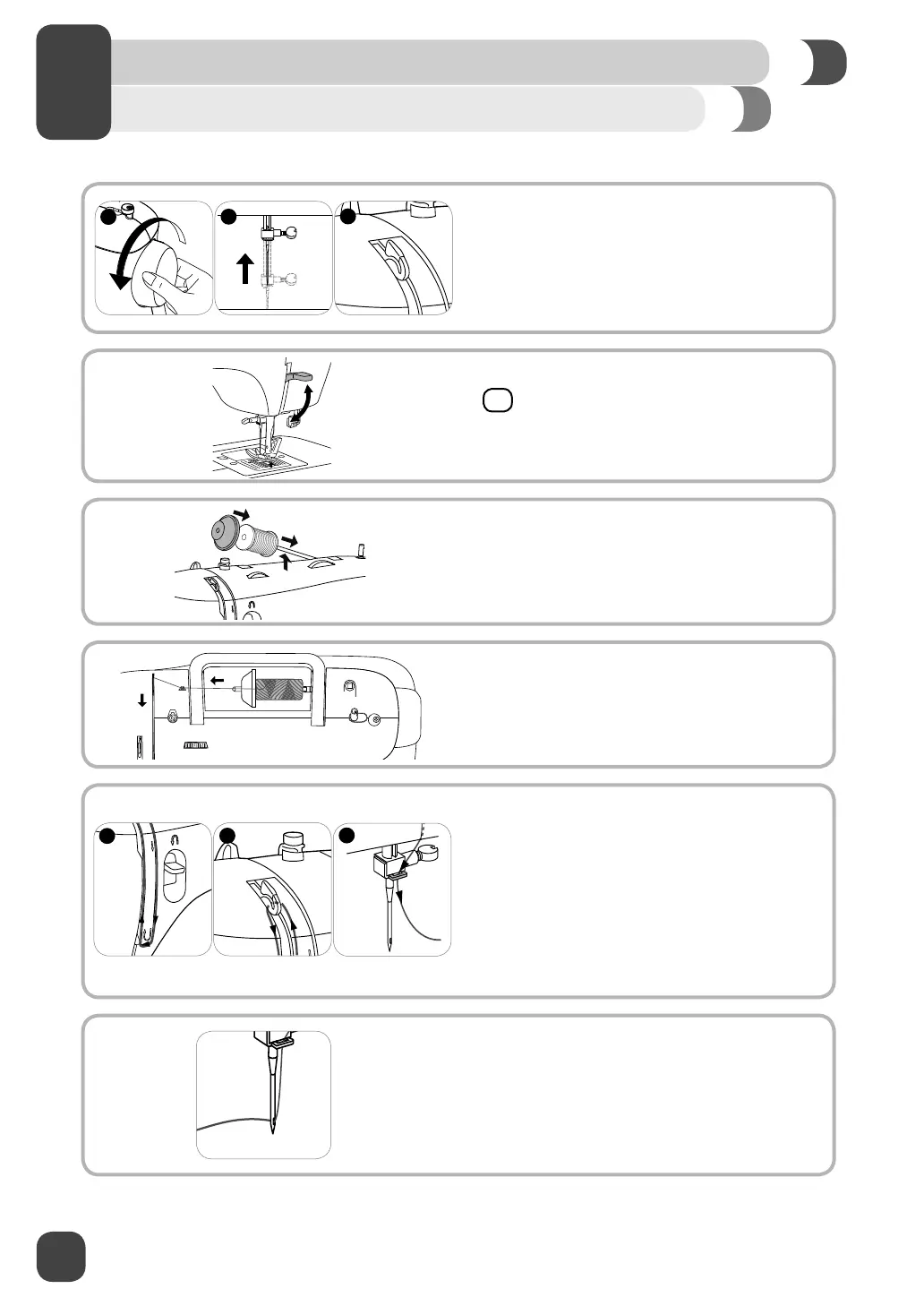 4. Draw thread from the spool through the upper