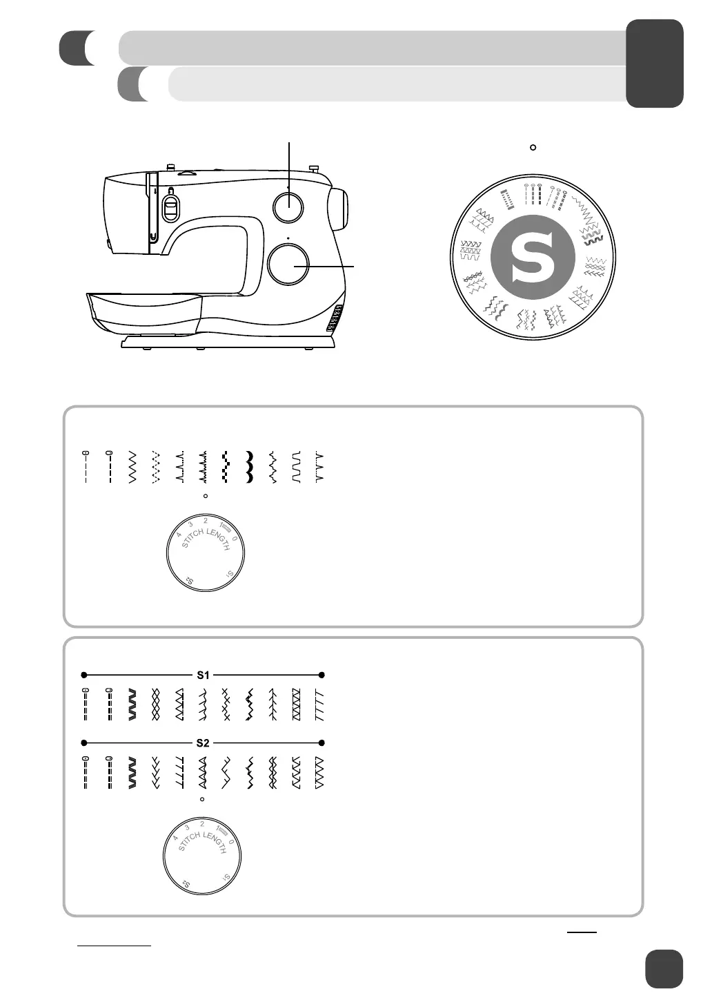 2. Set the Stitch Length Dial so that the S1 or S2