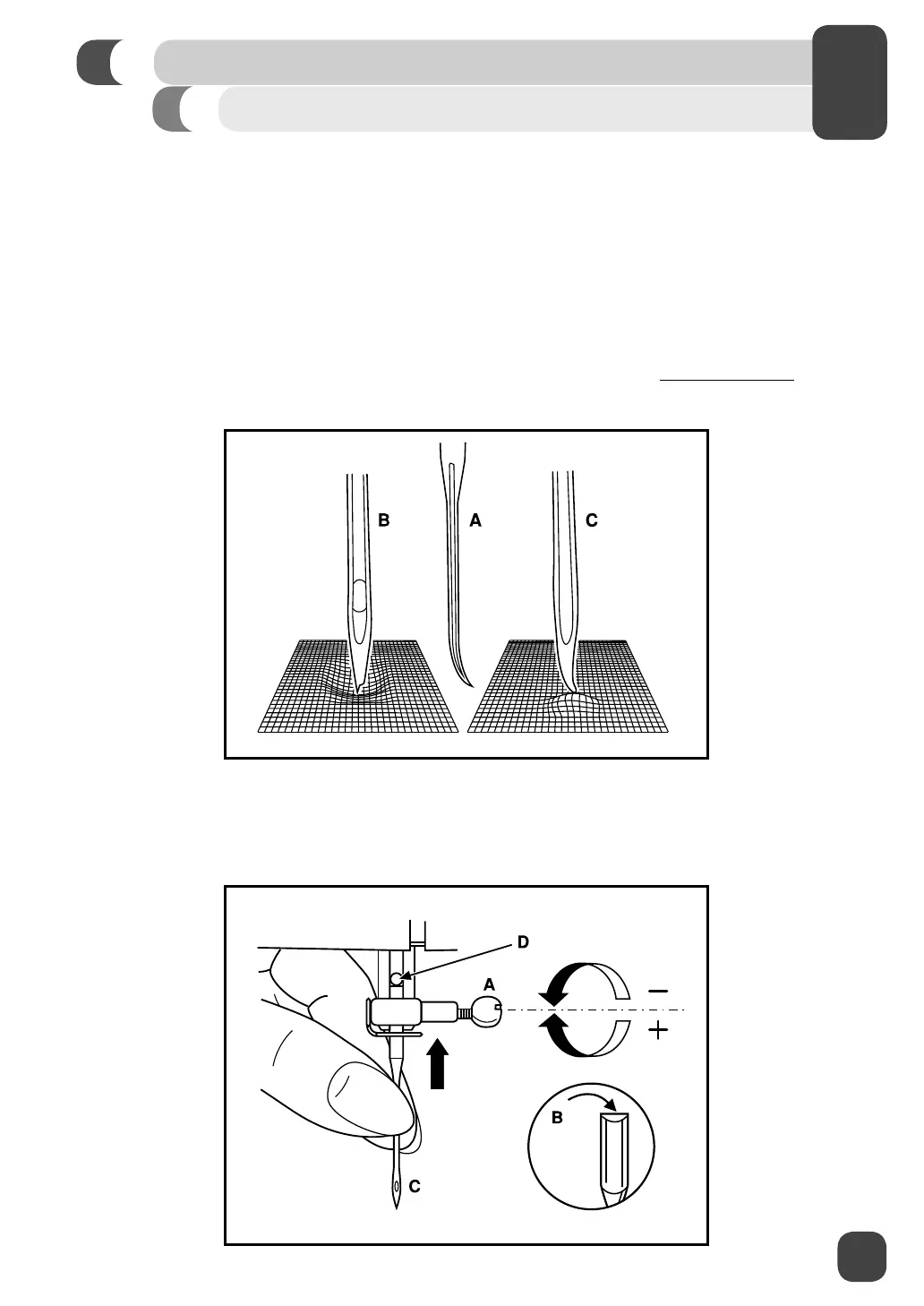 If the needle becomes bent (A), the point becomes damaged (B) or the needle becomes dull (C), you