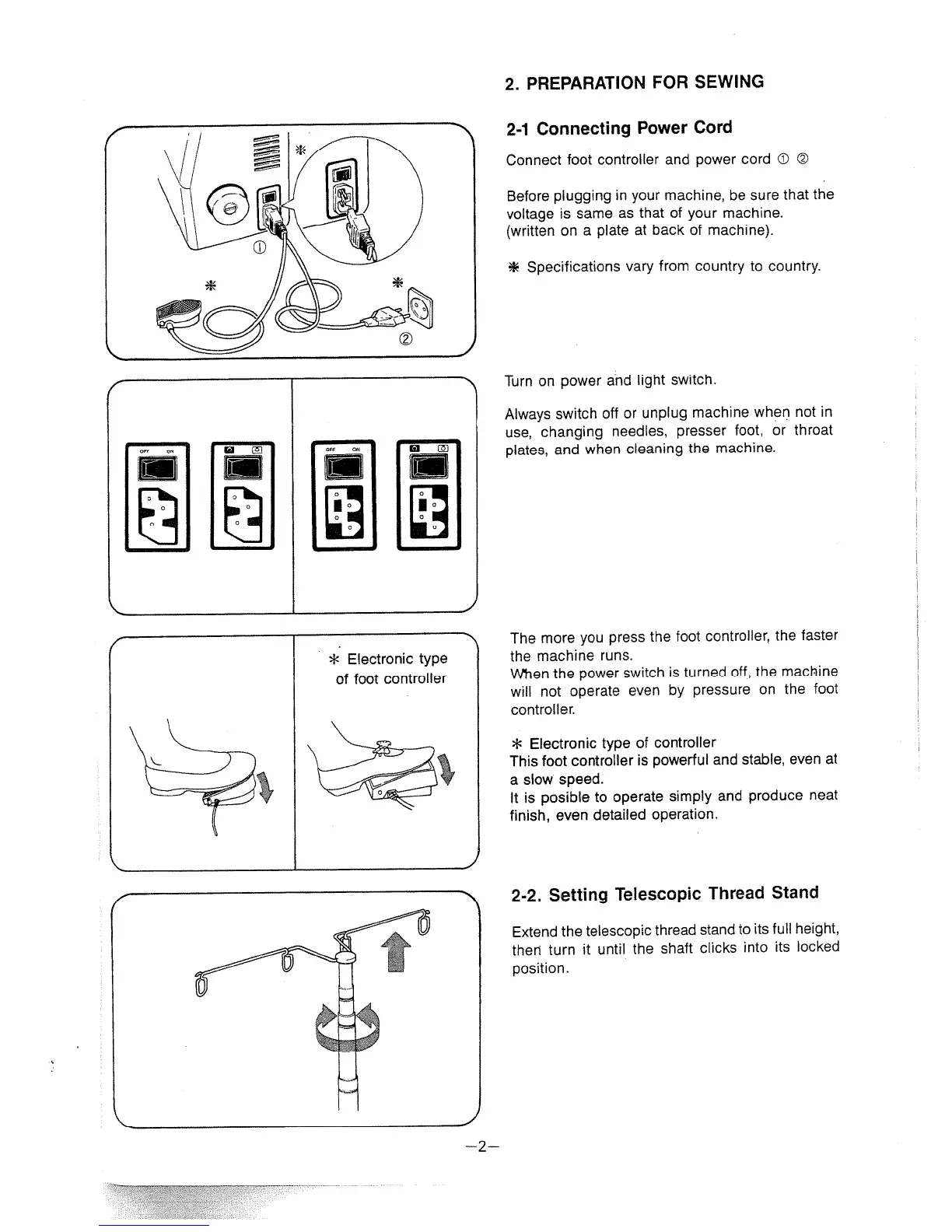 Singer SL234D - Connecting Power Cord and Thread Stand