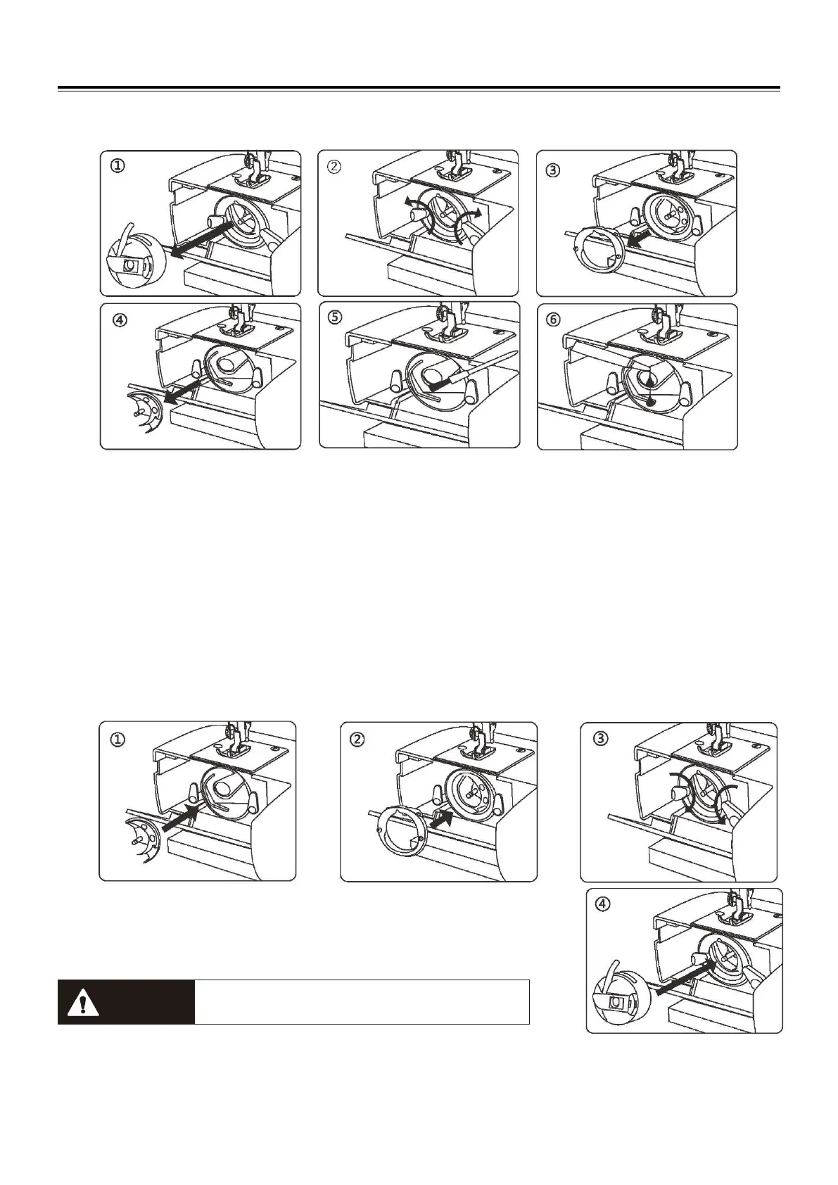 1. Open the hinged latch of the bobbin case and take it out of the machine.