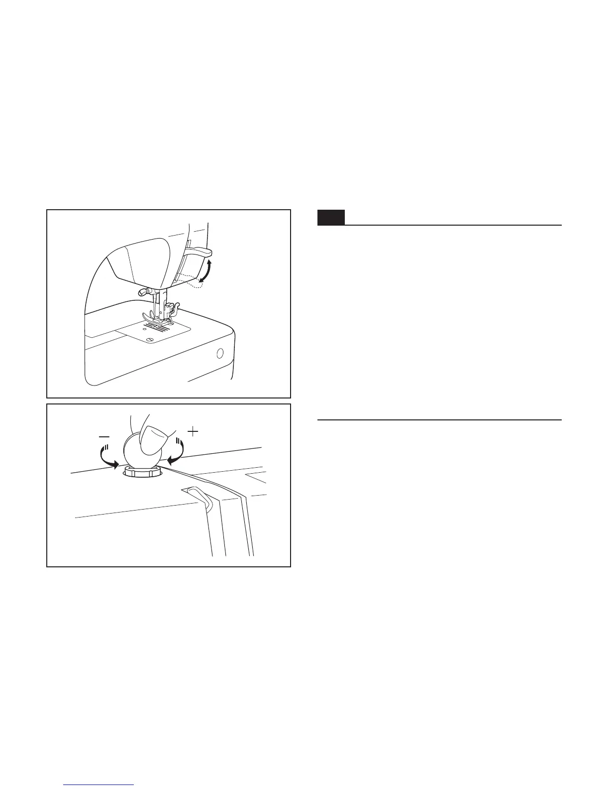 For sewing very thin fabric, loosen the pressure by turning the