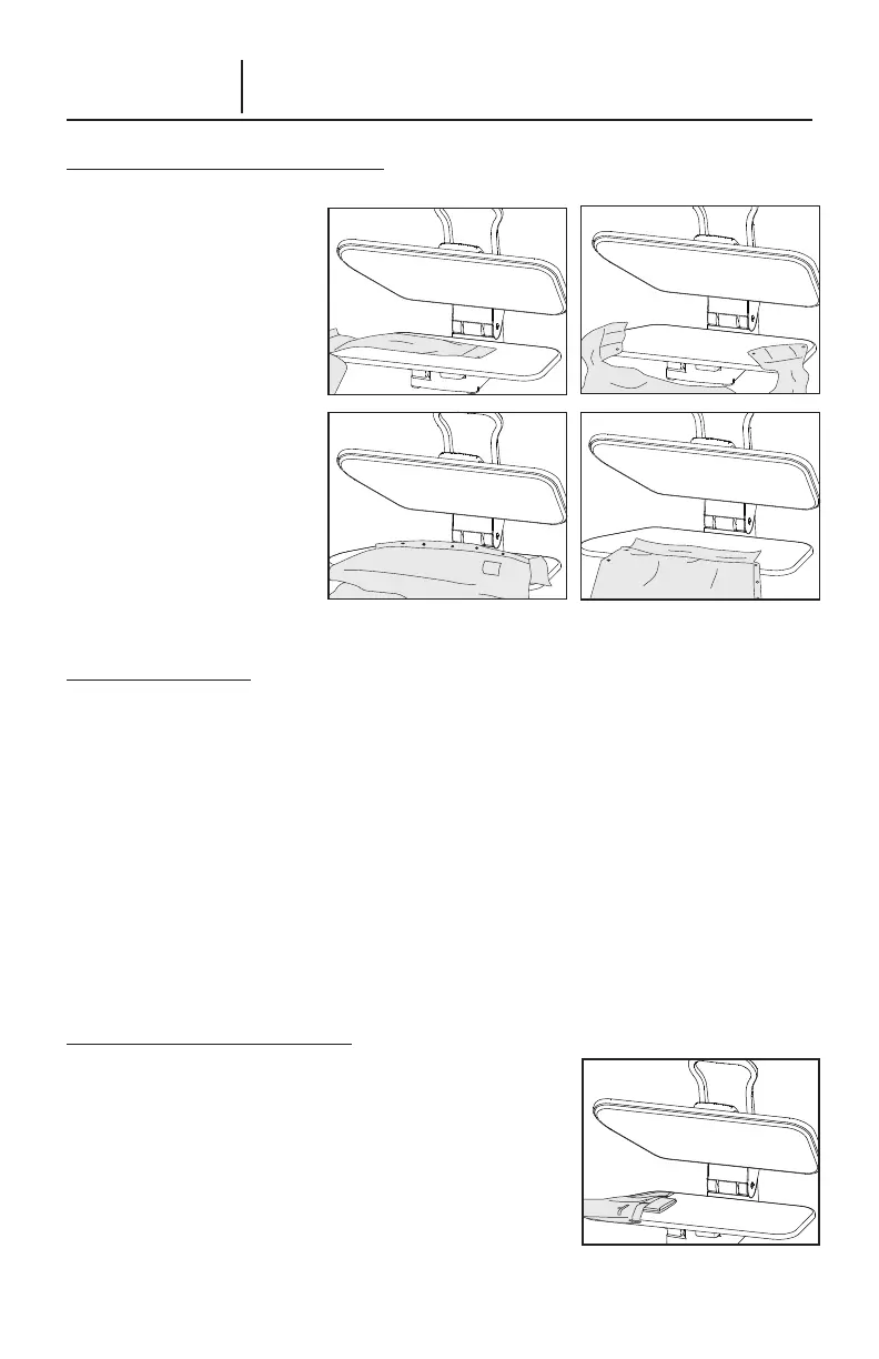 • Para prensar grandes pedaços de tecido, coloque a peça inteira atrás da tábua de passar.