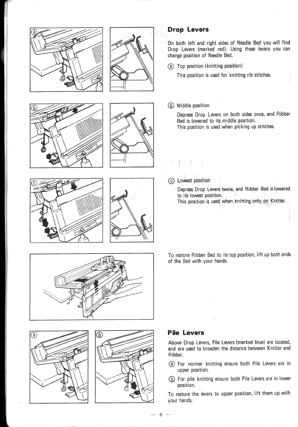 Singer SRP-50 - Ribber Control Levers and Dials; Drop Lever Functions