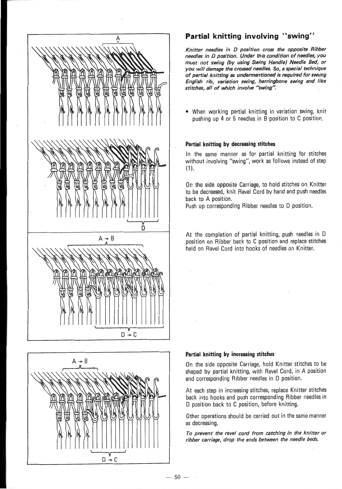 Knitter needles in D position cross the opposite Ribber
