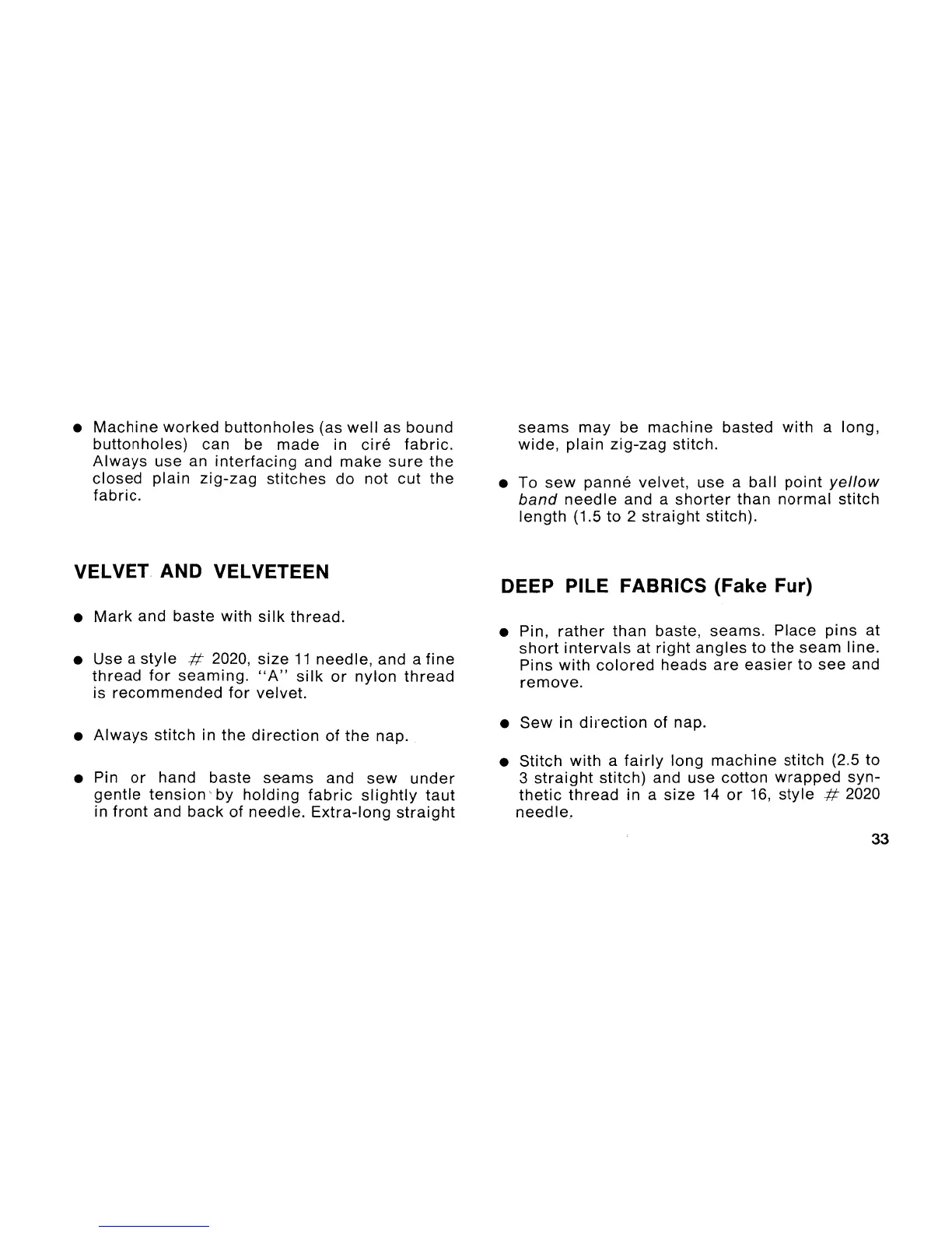 Singer Starlet 495 - Velvet and Velveteen; Deep Pile Fabrics (Fake Fur)