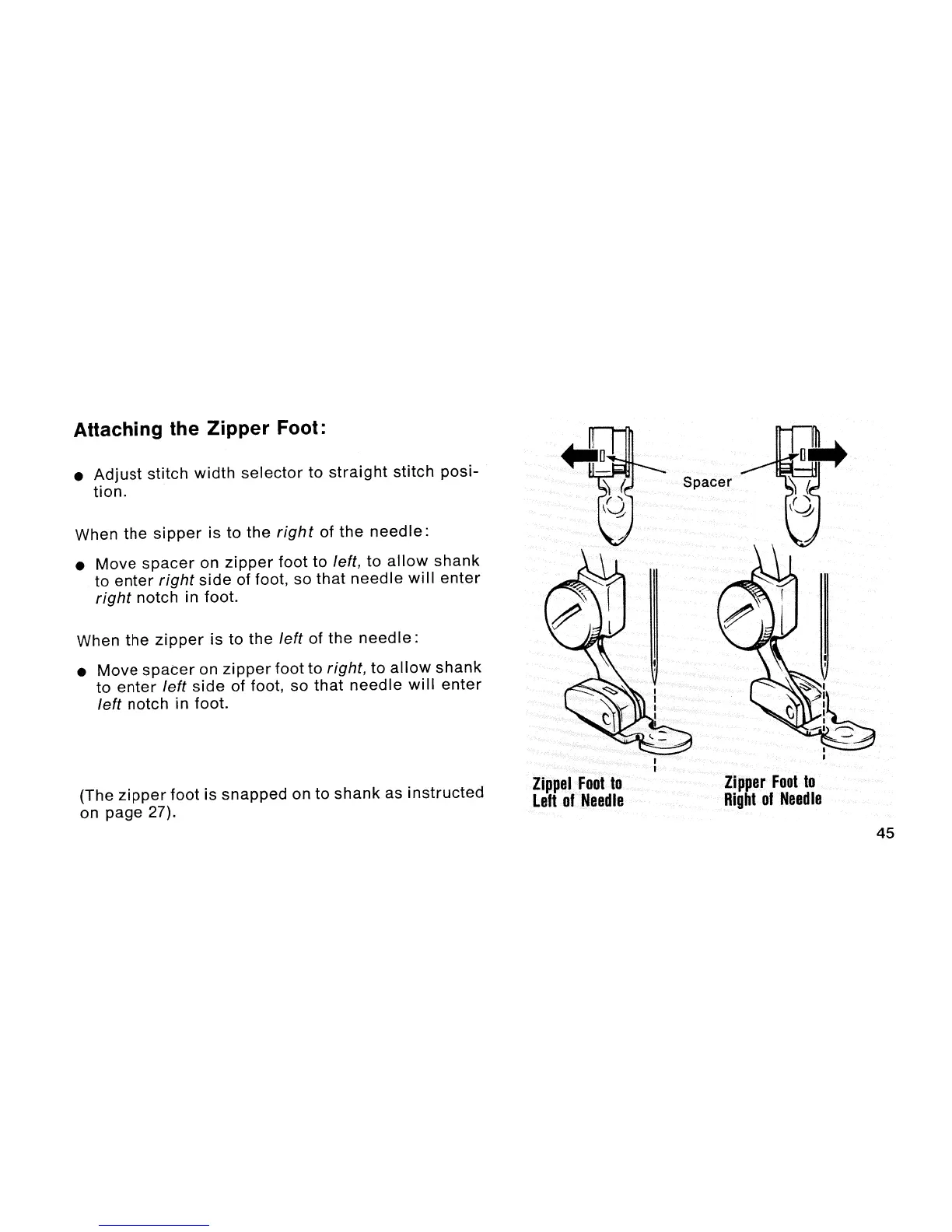 Singer Starlet 495 - Attaching the Zipper Foot