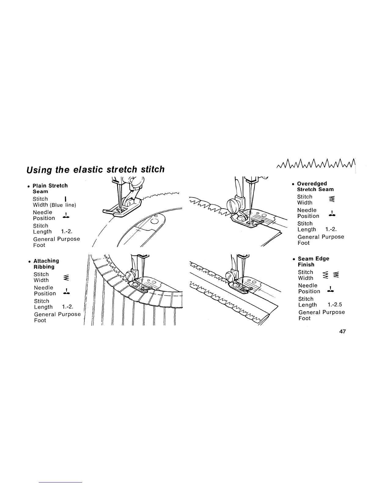 Singer Starlet 495 - Using the Elastic Stretch Stitch; Plain Stretch Seam; Attaching Ribbing; Overedged Stretch Seam