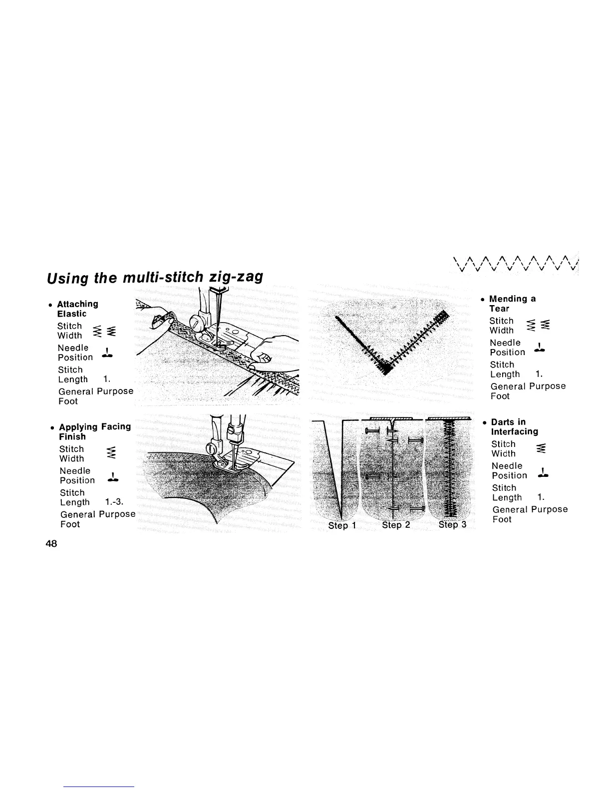 Singer Starlet 495 - Using the Multi-Stitch Zig-Zag; Attaching Elastic; Applying Facing Finish; Mending a Tear