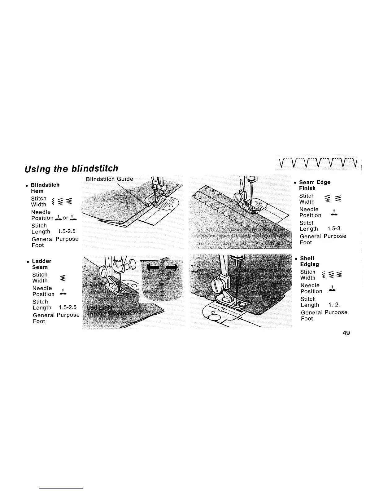 Singer Starlet 495 - Using the Blindstitch; Blindstitch Hem; Ladder Seam; Seam Edge Finish
